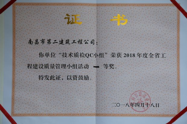 昨日,在全省QC成果發(fā)布會上,公司技術(shù)質(zhì)檢QC小組榮獲2018年度全省工程建設(shè)質(zhì)量管理小組活動一等獎。