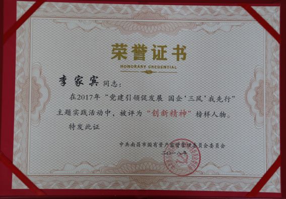 在2017年度國資委組織的“黨建引領(lǐng)促發(fā)展 國企“三風(fēng)”我先行”主題實踐活動中,陳國明同志被評為“優(yōu)秀工作者”,李家兵同志被評為“創(chuàng)新精神”榜樣人物,徐棽同志被評為“工匠精神”榜樣人物。