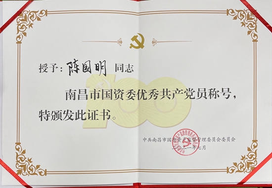 在隆重紀(jì)念中國共產(chǎn)黨成立100周年之際,南昌市國資委和南昌旅游集團(tuán)于近日對(duì)一批來自各條工作戰(zhàn)線上的優(yōu)秀黨員和優(yōu)秀黨務(wù)工作者及先進(jìn)基層黨組織進(jìn)行了表彰,獎(jiǎng)勵(lì)他(她)們?cè)诟髯缘墓ぷ鲘徫簧?/font>履職盡責(zé)創(chuàng)先進(jìn)、立足崗位爭(zhēng)優(yōu)秀,在推動(dòng)企業(yè)高質(zhì)量發(fā)展中充分發(fā)揮戰(zhàn)斗堡壘和先鋒模范作用。其中,公司陳國明同志榮獲市國資委“優(yōu)秀共產(chǎn)黨員”稱號(hào),公司黨委被評(píng)為南旅集團(tuán)“先進(jìn)基層黨組織”,黨員職工胡穎明、徐小蘭、王昕、王貞同志獲南旅集團(tuán)“優(yōu)秀共產(chǎn)黨員”稱號(hào)。